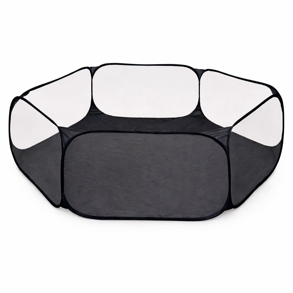 Hopfällbar och portabel lekhage för smådjur. Automatisk pop-up design som fälls upp på sekunder och enkelt viks ihop efter användning. Andningsbart nät ger god ventilation och fri sikt.