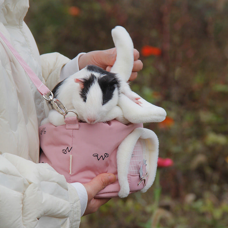 Mjuk och dekorativ transportväska för smådjur i kanindesign. Tillverkad i mjukt tygmaterial med justerbar axelrem. Perfekt för kortare transporter och utflykter.
